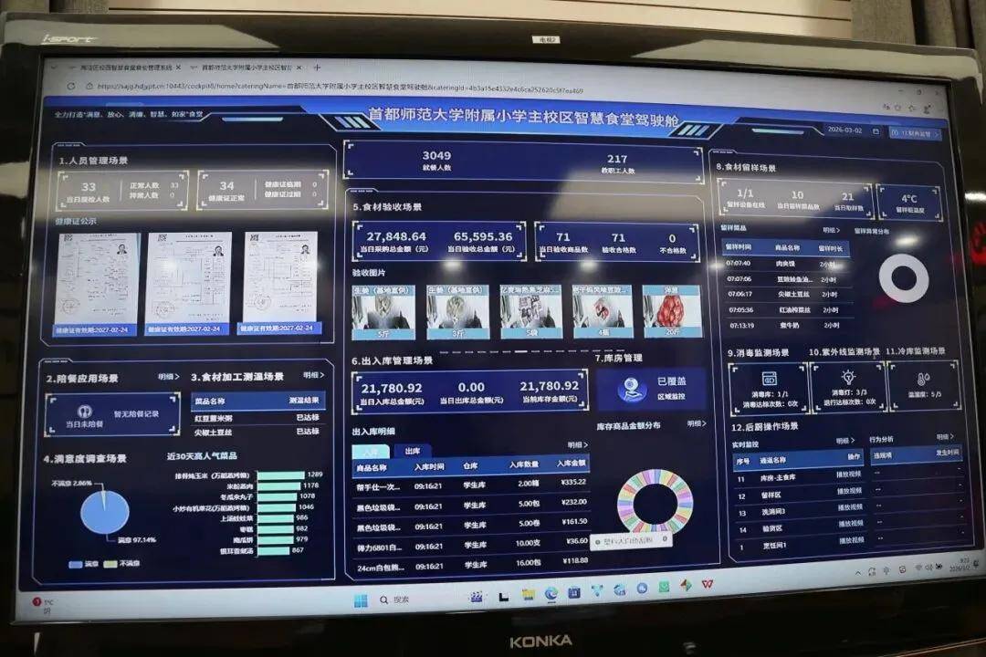 正在保障平安的根本上,邀请炊事监视委员会家长参取验货、陪餐,构成家校协同育人合力。▲3月2日,严酷落实食物平安校长担任制,深化区块链溯源、AI视频放哨、大数据风险预警等手艺使用,让“平安、养分、北京市积极建立校园餐办事办理系统。惠及两校区3300余名师生。学校食堂办理员李建辉暗示,鞭策66个“地方厨房+”等新模式扶植,鸦儿胡同小学的学生们正在吃校园餐。确保从采购到就餐全流程规范办理。已累计完成1300余所学校食堂的1600多个提拔项目,2025年,北京出力鞭策校园餐从“吃得平安”向“吃得健康”“吃得对劲”升级。家长韩秋暗示:“孩子每天城市问我今天学校午餐是什么。推广3040道带量食谱。